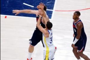新规库里不适用?库里绝命三分被大洛明显打手 所以才摔在观众席
